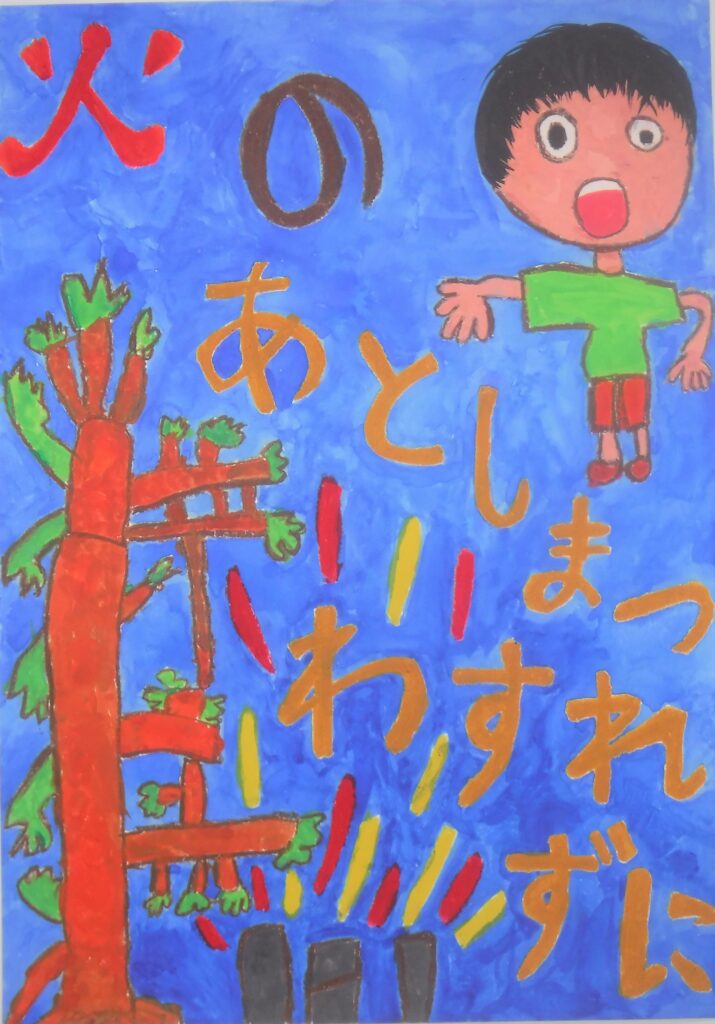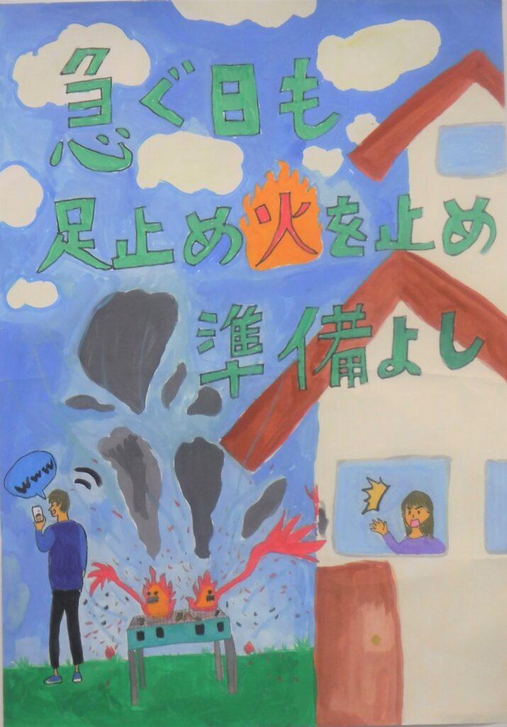 令和7年度火災予防ポスター優秀作品の展示について 2025年10月17日 仲多度南部消防組合消防本部2階ロビーにて、令和7年度火災予防ポスター優秀作品を展示しています。 展示期間 令和7年10月下旬頃から令和7年12月中旬頃まで 香川県知事賞 琴平小学校 5年 横山 茉美 長炭小学校 5年 萱原 翔希 香川県消防協会長賞 象郷小学校 5年 合田口 結斗 四条小学校 2年 中家 広翔 香川県幼少年女性防火委員会長賞 象郷小学校 5年 廣瀨 柊哉 仲南小学校 4年 大西 凛 お問い合わせ先 Contact 総務課 0877-73-3095 nfd-soumu@nakatado-fd.jp このページをシェアする LINE