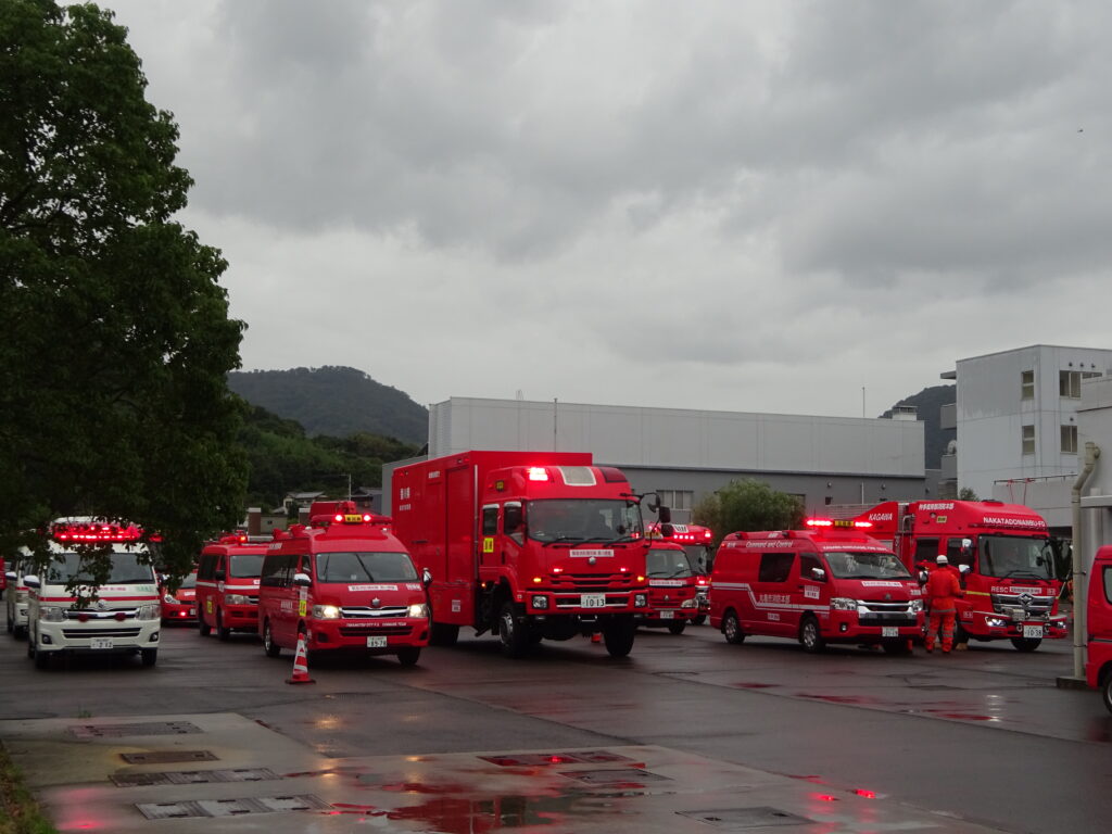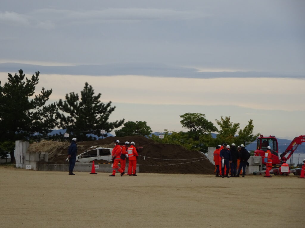 令和7年10月22日(水)、令和7年度緊急消防援助隊香川県大隊実動訓練が香川県消防学校で行われました。訓練内容は、徳島県を震源とするマグニチュード7の直下型地震が発生し、多くの家屋や建物が倒壊したほか、降り続く長雨により、土砂崩れや水害等の災害が発生しており、死者及び負傷者が発生している事案を想定し、香川県下の9消防(局)本部が、迅速な出場及び被災地での円滑な活動を行うために、各消防本部の連携強化を図ることを目的とした訓練を行いました。当消防本部からは、現場指揮本部や救助工作車の救助隊員及び安全管理員等の職員を派遣しました。今後も、大規模な訓練を継続し、地域住民の安心、安全の確保に努めます。