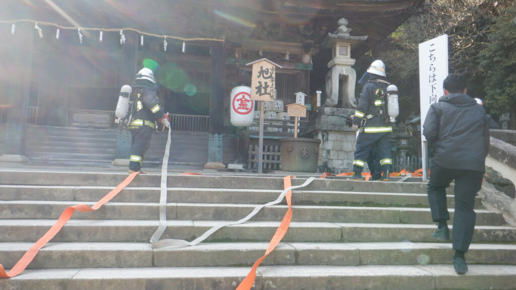 令和8年1月26日(月)、文化財防火デーに合わせ、国の重要文化財を数多く有する金刀比羅宮において、関係機関と連携した消防訓練を実施しました。訓練では、消防署・消防団等による消火・救急活動の他、文化財を火災から守るための対応要請の確認を行い、万が一の火災発生時に迅速かつ的確な対応ができるように、連携強化を図りました。今後も貴重な文化財を後世に継承するため、地域の皆様と協力しながら、防火・防災対策の充実に努めて参ります。